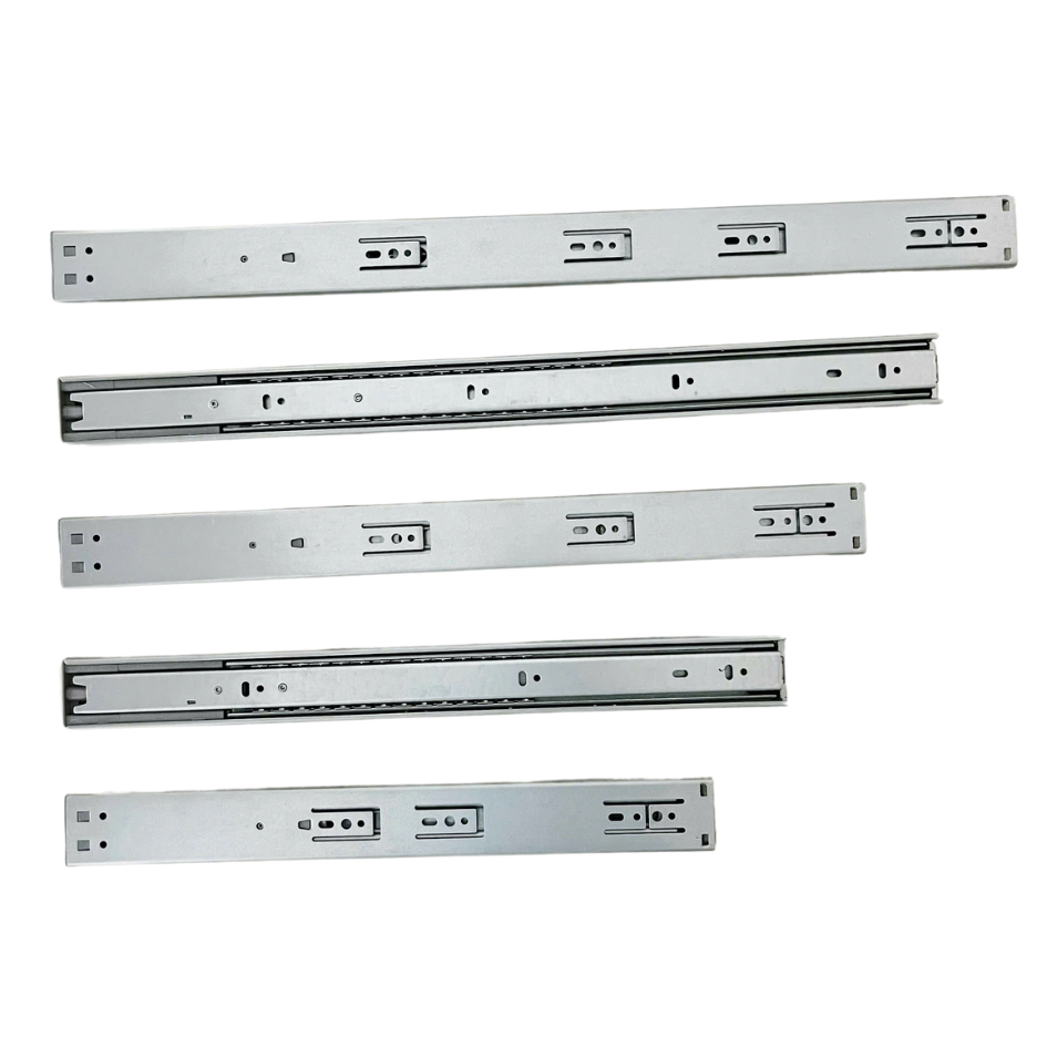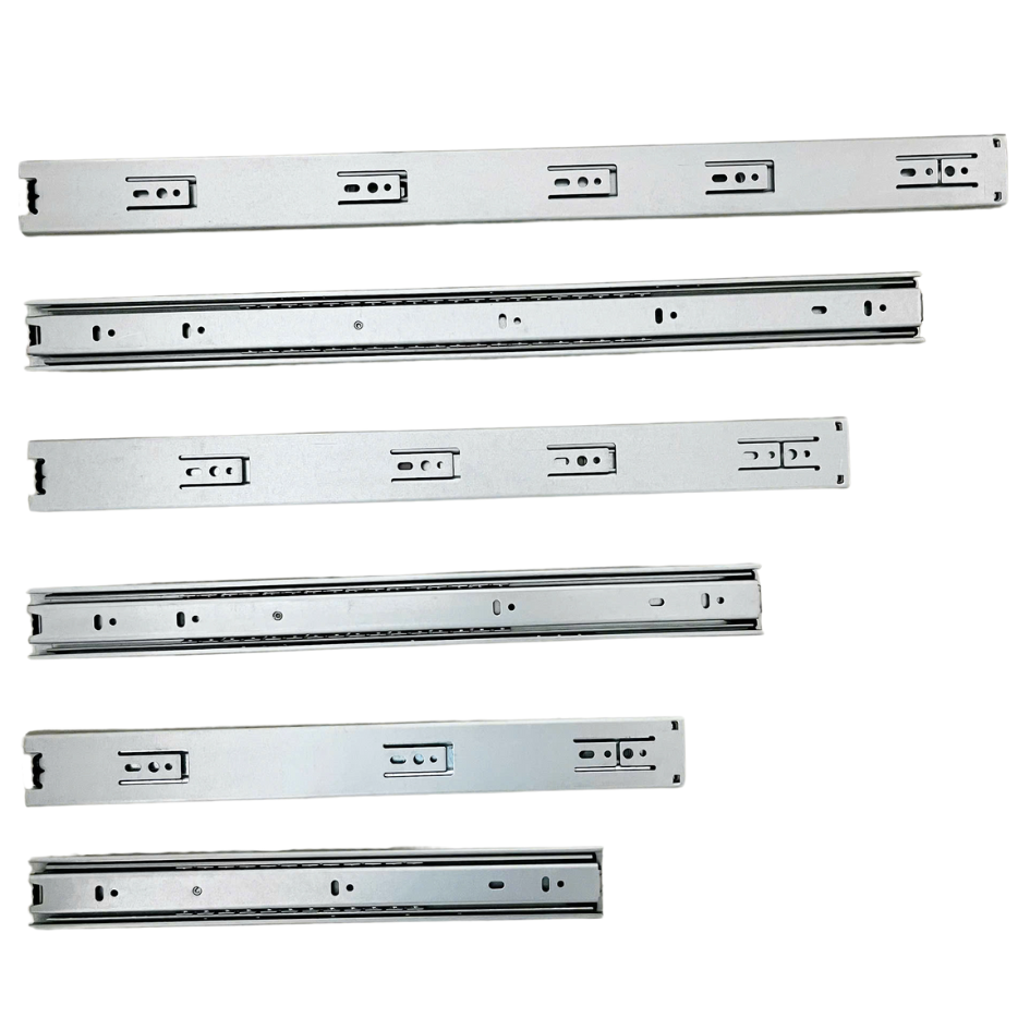 Thanh trượt loại Rivet – Được dùng trong các thiết kế ngăn bàn, ngăn tủ, ngăn kéo và các thiết kế nội thất khác. Cấu tạo bởi 2 thanh ray song song giúp cho các sản phẩm đóng mở đơn giản và có khả năng chịu tải cao.
